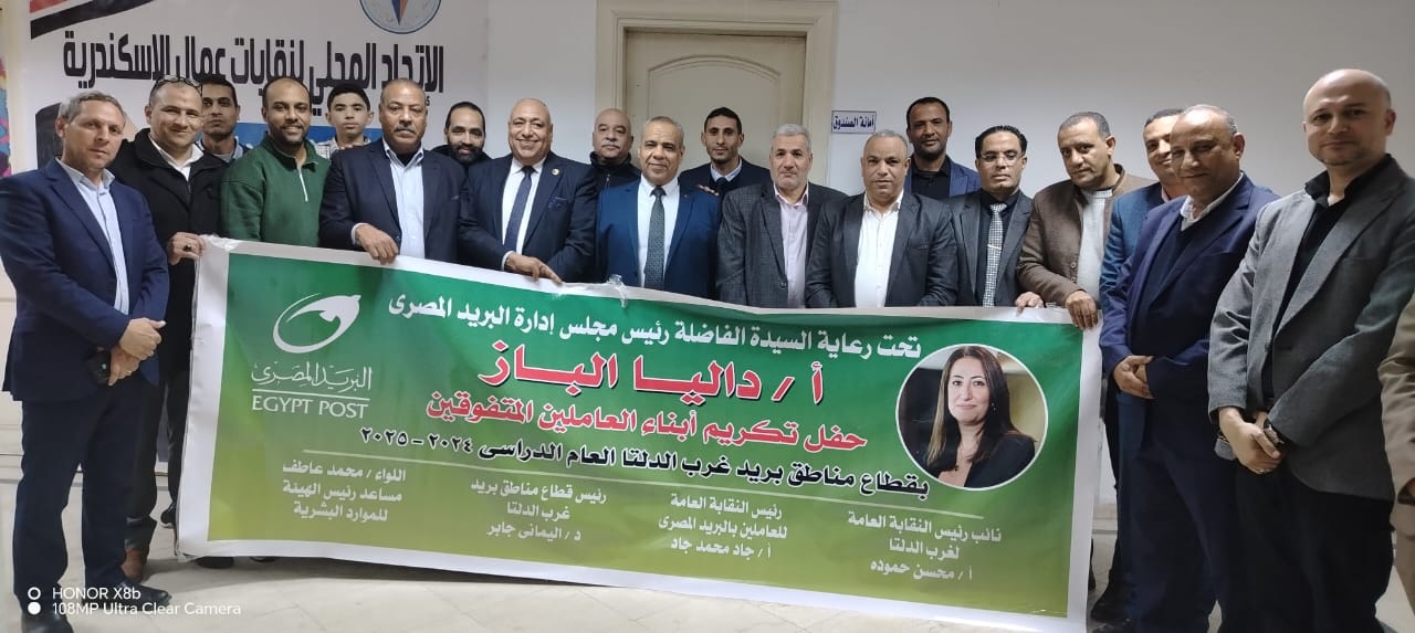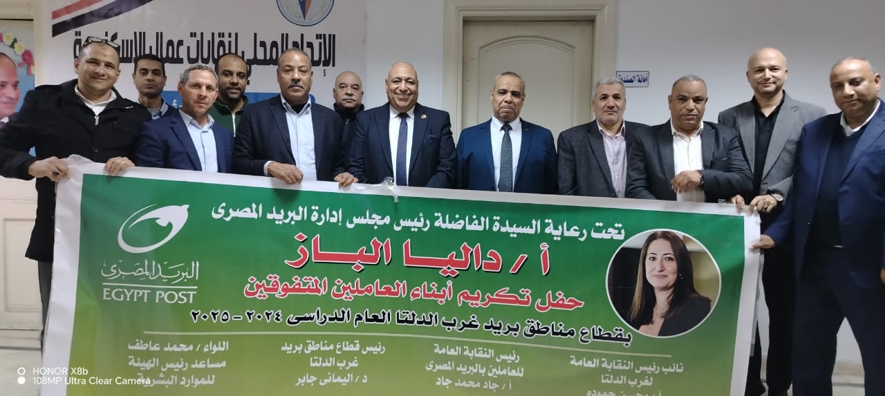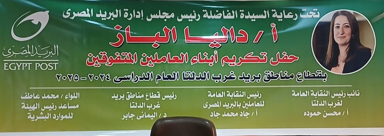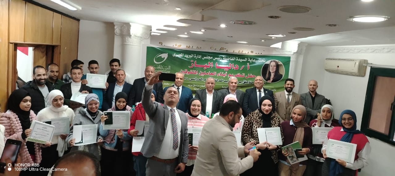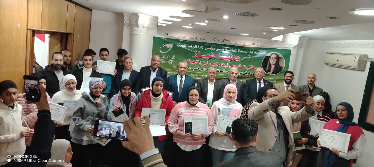 تحت رعاية دليا الباز، رئيس مجلس إدارة الهيئة القومية للبريد، وبحضور ومتابعة جاد محمد جاد، رئيس النقابة العامة للبريد، نظم قطاع غرب الدلتا بالهيئة القومية للبريد حفلاً مهيباً لتكريم الأبناء المتفوقين دراسياً من أبناء العاملين بالقطاع، عبر مراحل التعليم الابتدائي والإعدادي والثانوي.