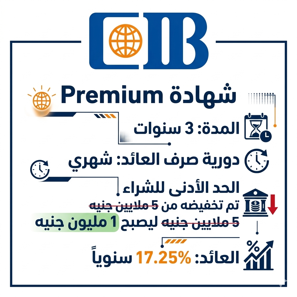 شملت التعديلات الأخيرة شهادة “Premium” الثلاثية، والتي تعد واحدة من أبرز الأوعية الادخارية للبنك، حيث تم تخفيض الحد الأدنى لشرائها بشكل كبير لينخفض من 5 ملايين جنيه إلى مليون جنيه واحد فقط، مع الاحتفاظ بعائد شهري ثابت يبلغ 17.25%.