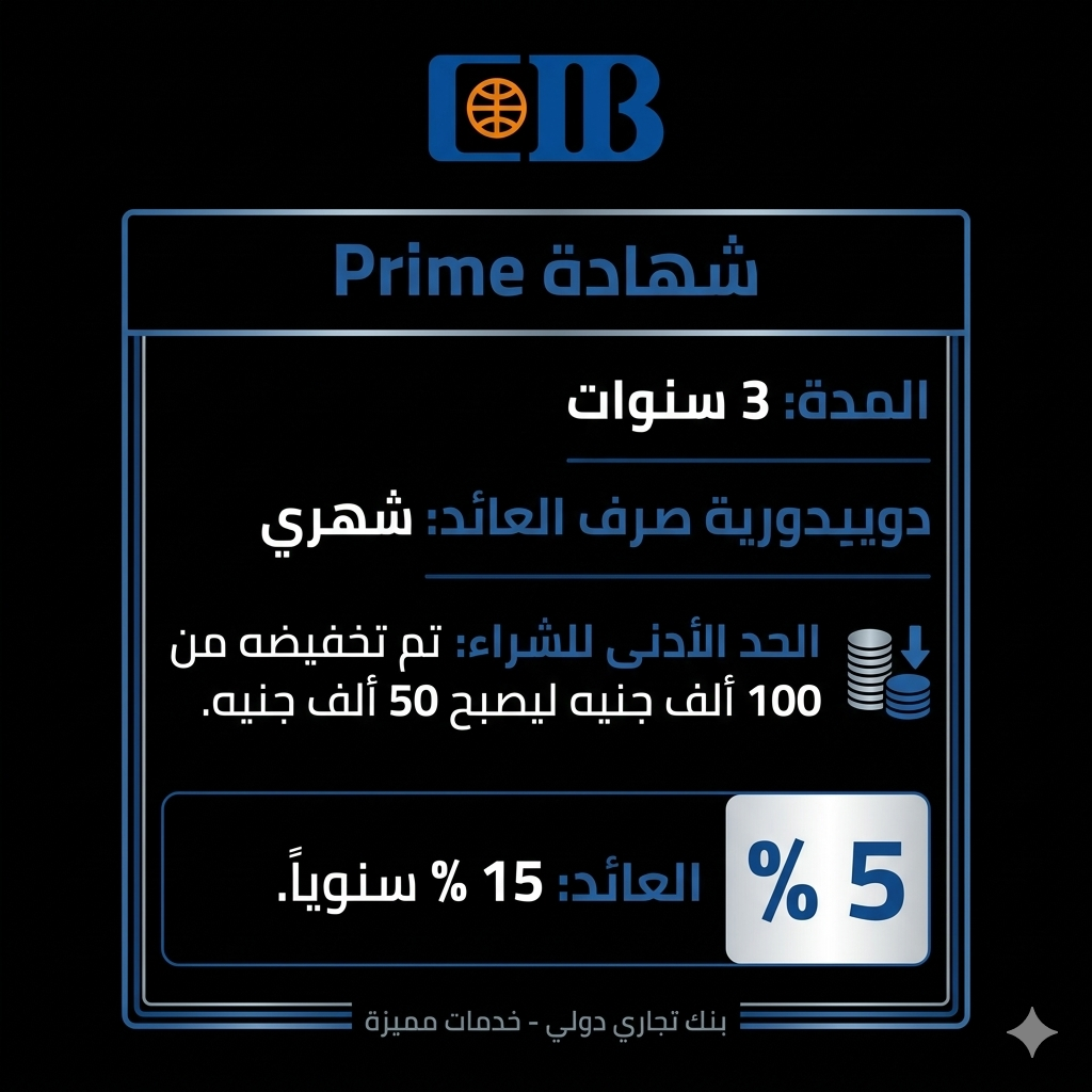 على صعيد متصل، امتدت التسهيلات لتشمل شريحة عريضة من صغار ومتوسطي المدخرين من خلال شهادة “Prime” ذات الثلاث سنوات. فقد قرر البنك خفض الحد الأدنى للاكتتاب في هذه الشهادة بمقدار النصف، ليصبح 50 ألف جنيه بدلاً من 100 ألف جنيه، بعائد شهري ثابت يصل إلى 15%.
